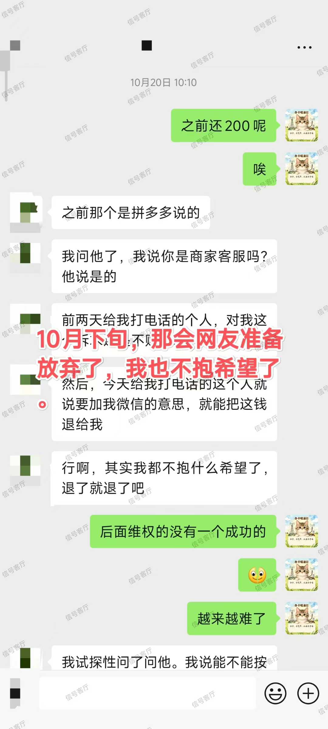 维权实在是太难了,商家不承认,拼XX平台和稀泥,有的平台不受理,申诉了很长时间,10月下旬的时候,网友已经不抱希望了,实话讲我也不抱希望了,帮助了很多网友,有的申诉一次后,就在没再跟我聊过,有个被商家拖时间,最后接受了2张、3张的赔偿,也有的商家很果断,直接赔5张。